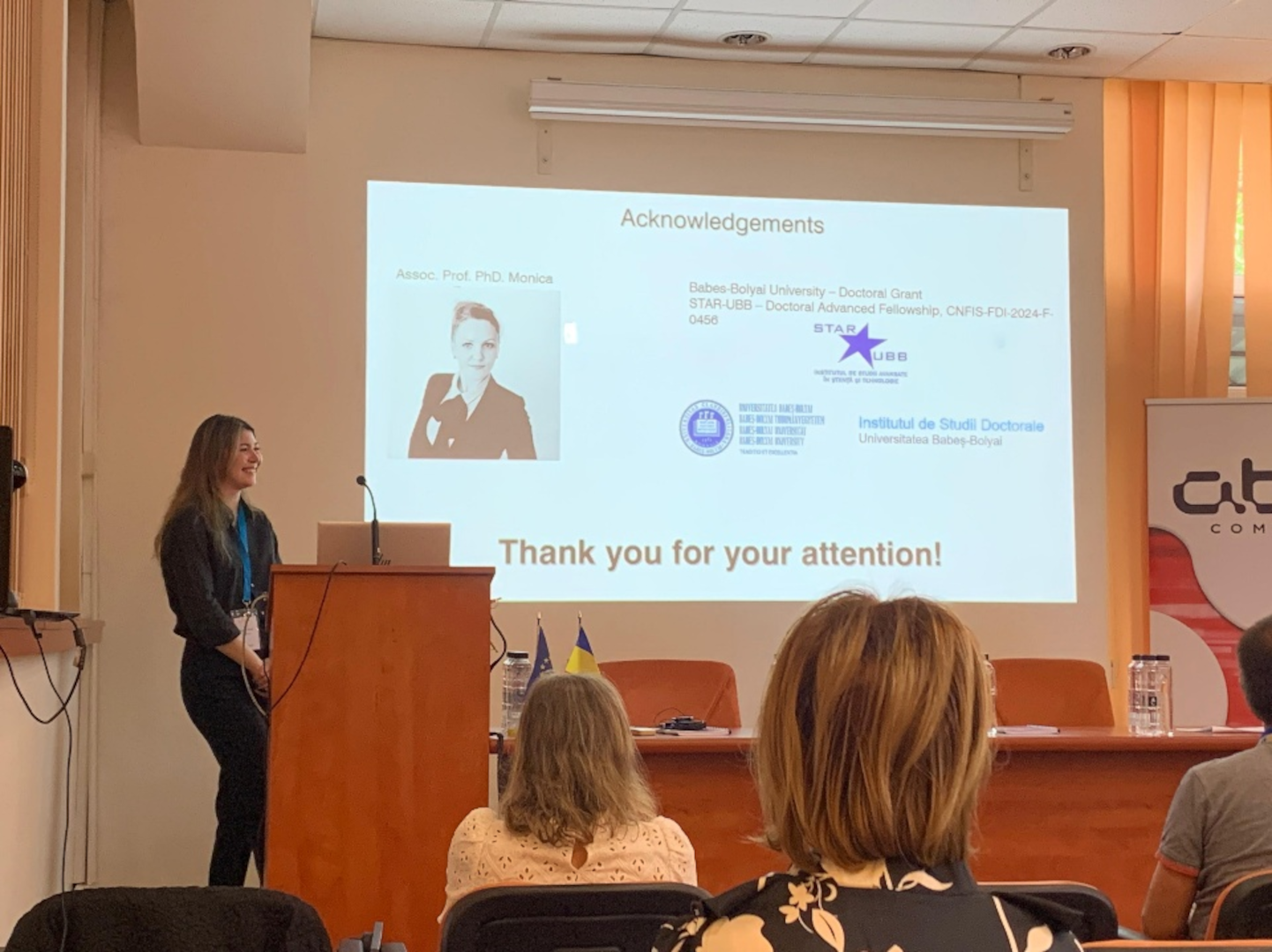 Daria Ioana Stoia, a second-year PhD student at the Faculty of Physics, presented an oral presentation at the 15th International Conference on Processes in Isotopes and Molecules, titled “Tunable Hybrid Microcapsules Loaded with Gold Nanoparticles for Photothermal Therapy,” held from September 16 to 19, 2025, in Cluj-Napoca, Romania.